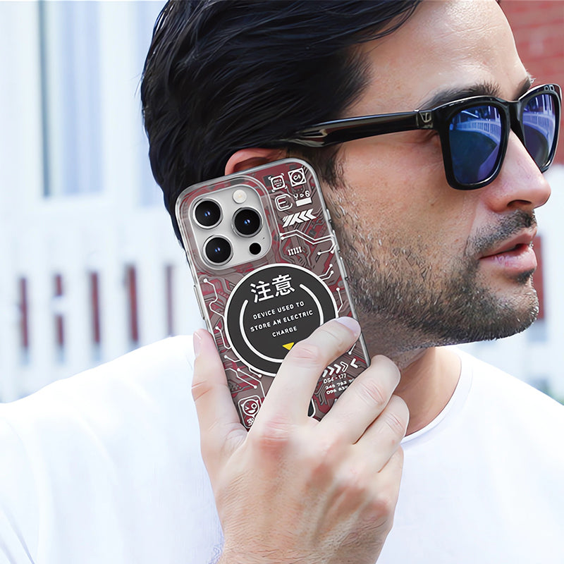 Taking technology and fashion as the basic concept, we create a unique futuristic style. The electric pedal texture and complex wiring visually enhance the sense of technology and present a high-tech appearance. The use of cyberpunk elements, such as metallic styles and mechanical patterns, further highlights the futuristic atmosphere. This mobile phone case shows the fusion of personality, innovation and technology, allowing users to be exposed to the charm and fashion of the unexplored world and show their own unique taste.