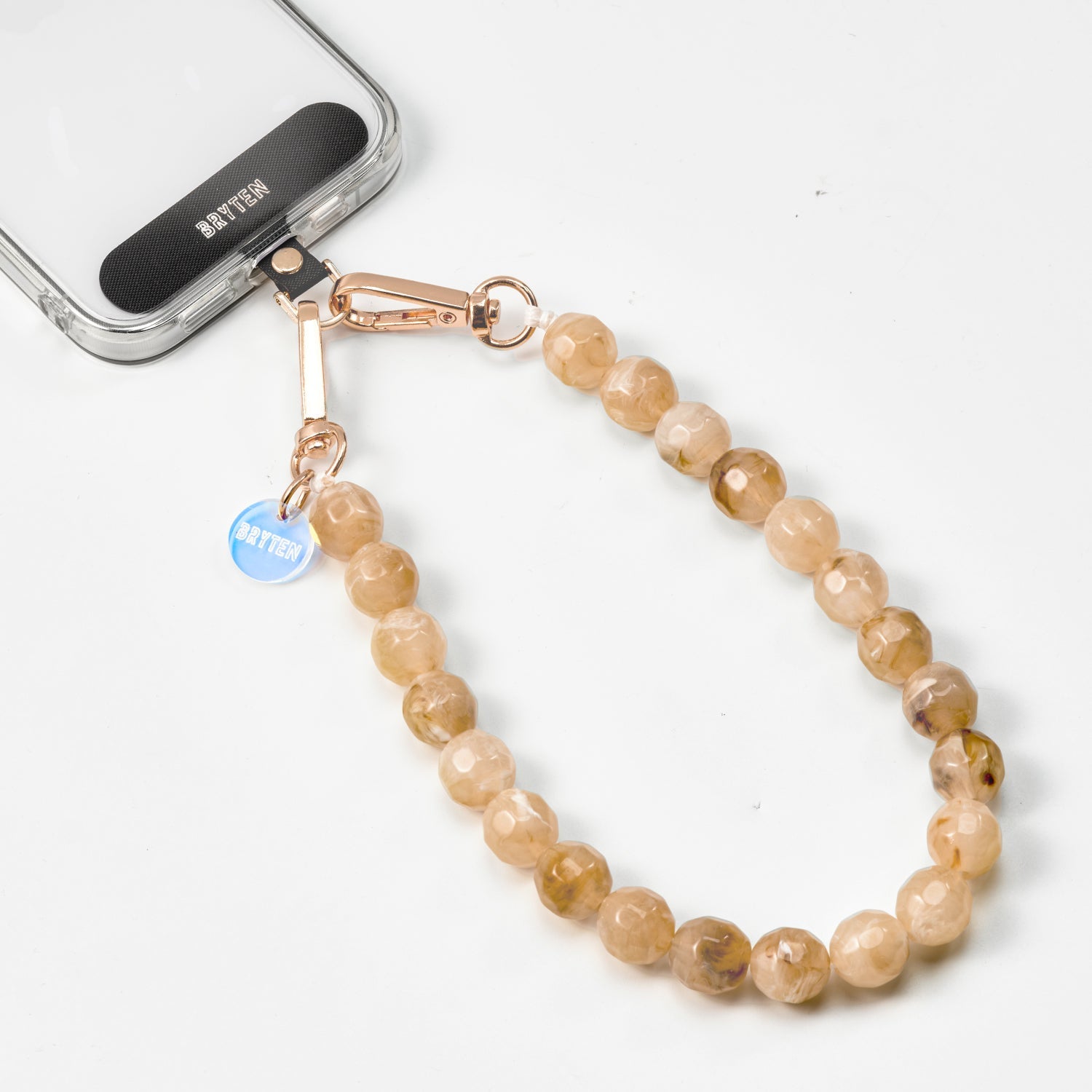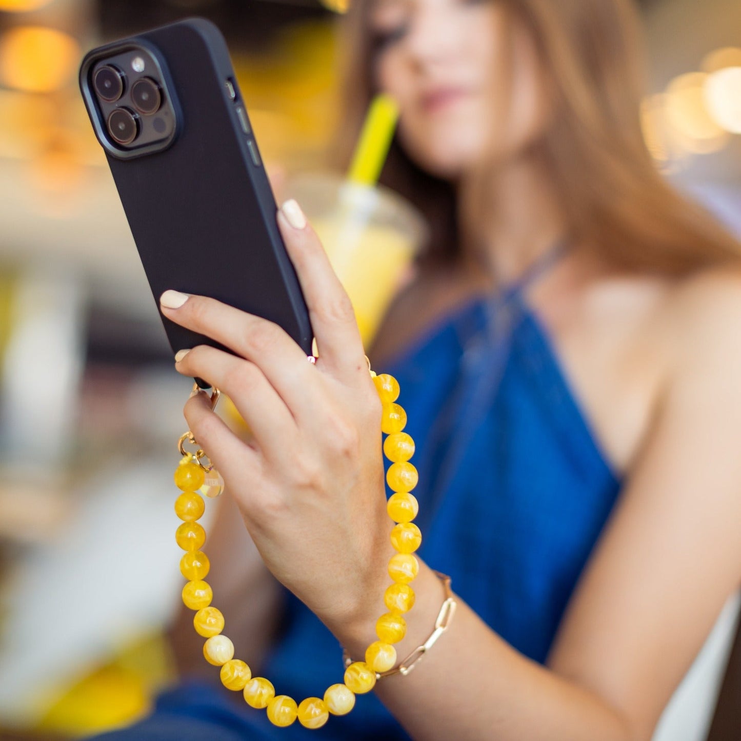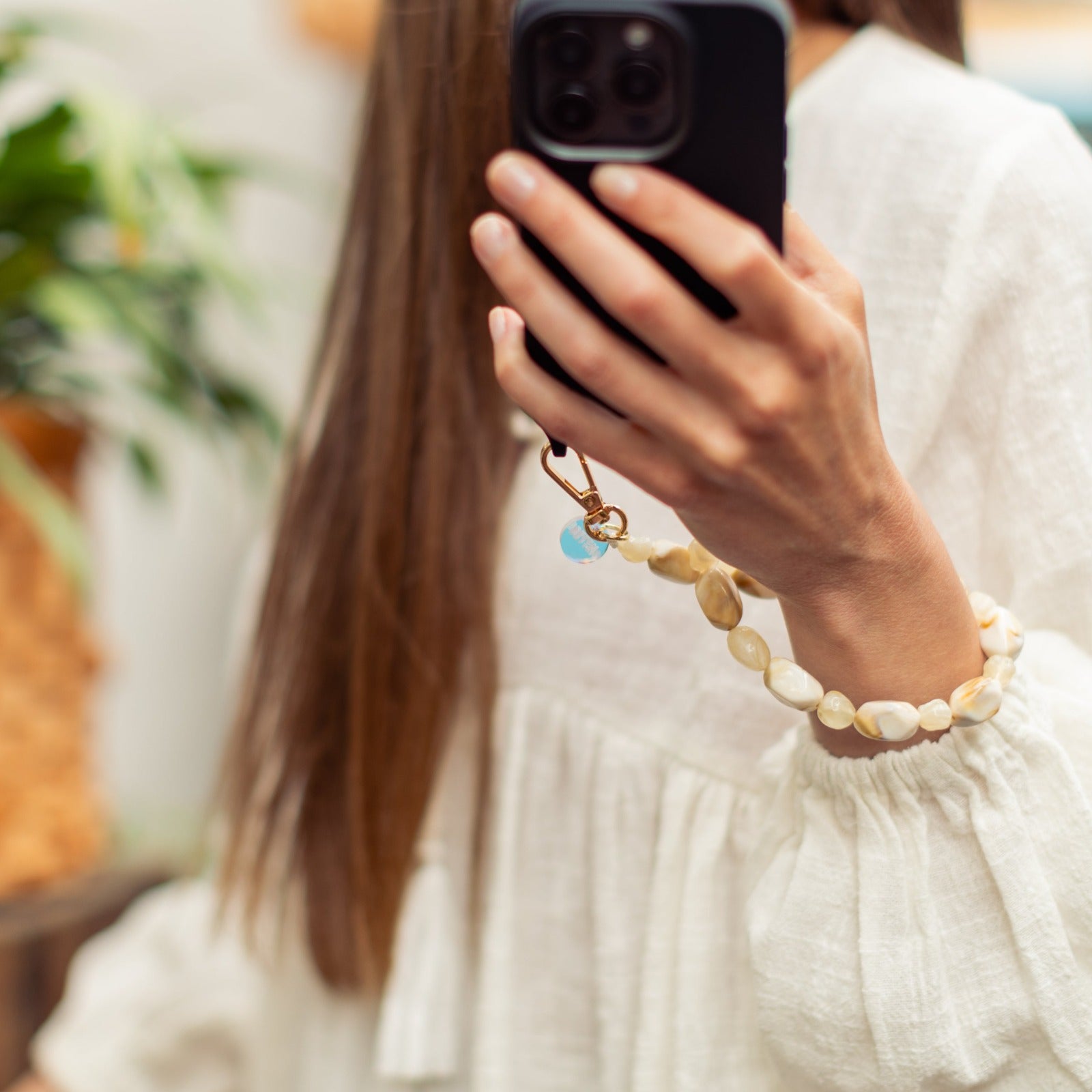 Take your everyday look to the next level with our collection of phone chains and straps. The perfect combination of style and functionality, allowing you to reinvent your look at anytime. Our wristlet phone strap features beads that shines beautifully, mimicking the natural allure of polished stone, creating a sophisticated look that complements any outfit.