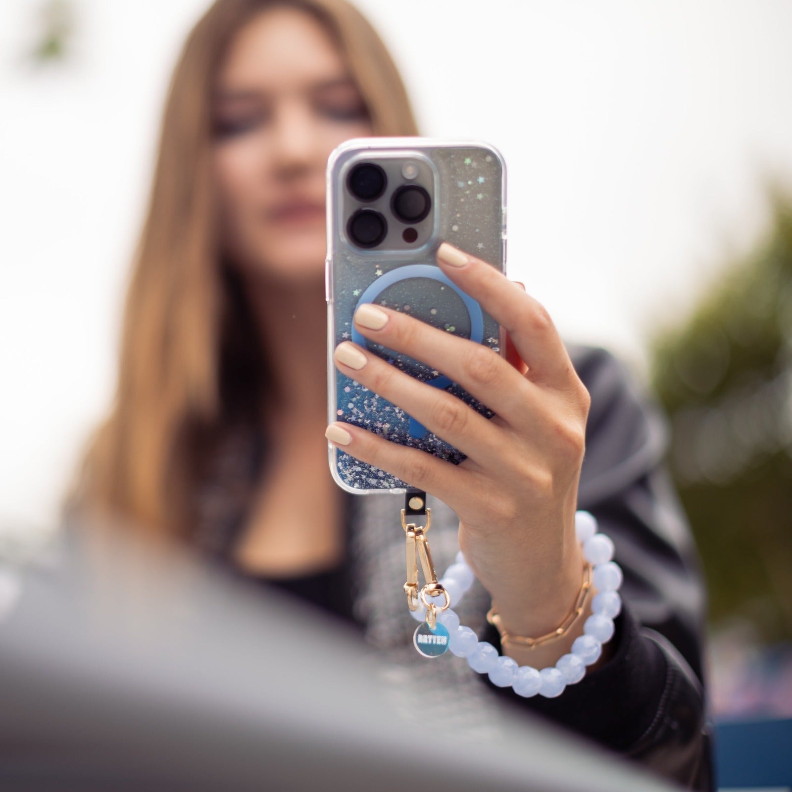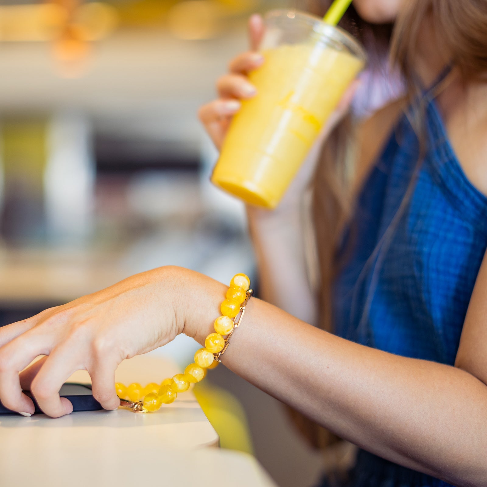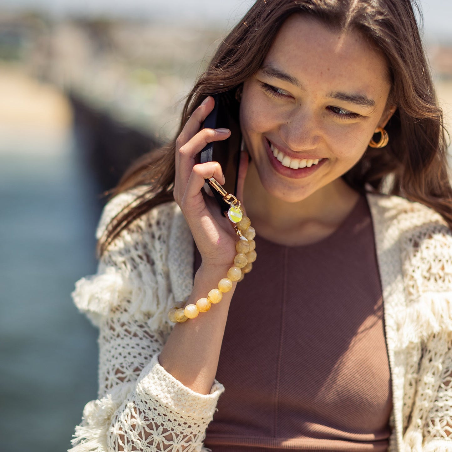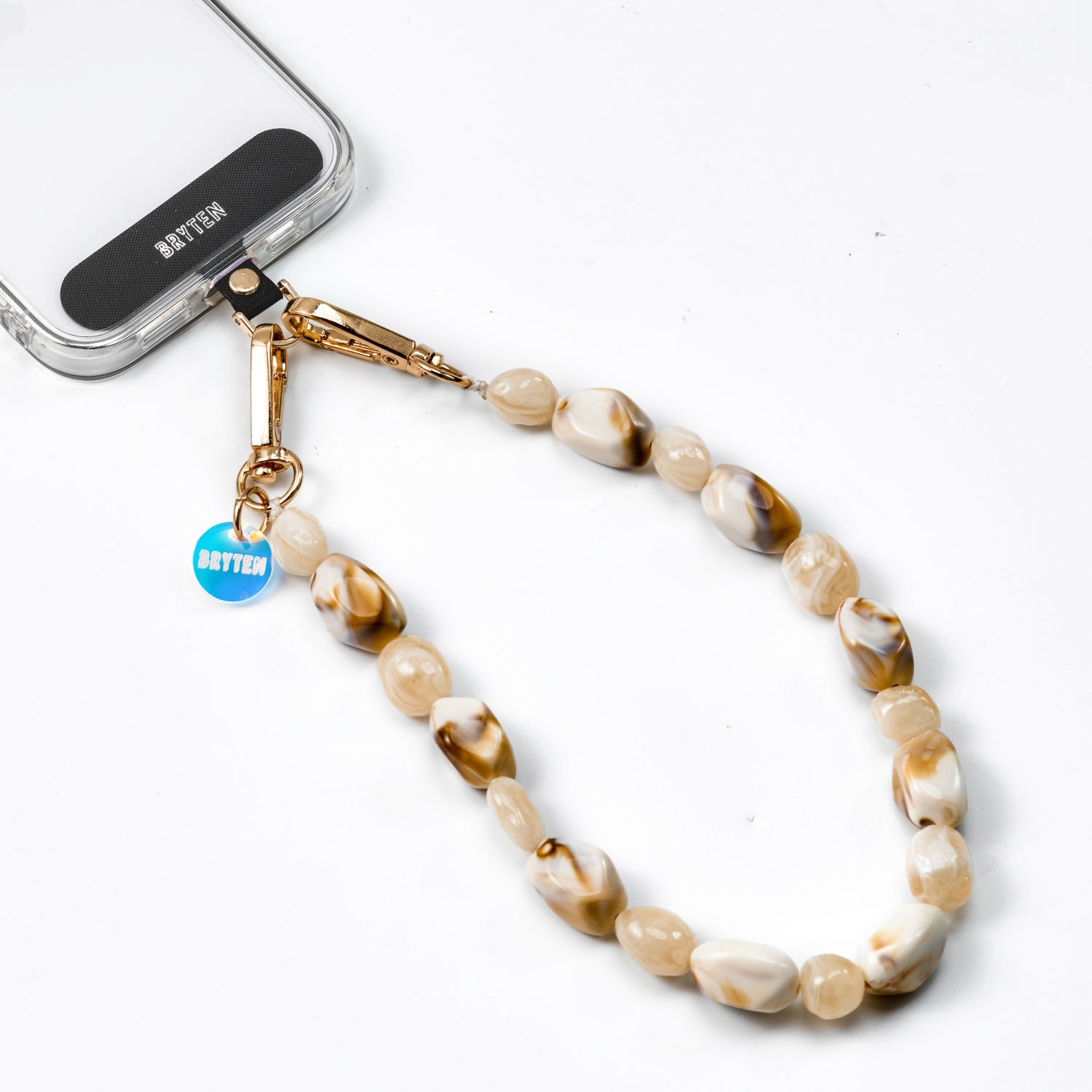 Take your everyday look to the next level with our collection of phone chains and straps. The perfect combination of style and functionality, allowing you to reinvent your look at anytime. Our wristlet phone strap features beads that shines beautifully, mimicking the natural allure of polished stone, creating a sophisticated look that complements any outfit.