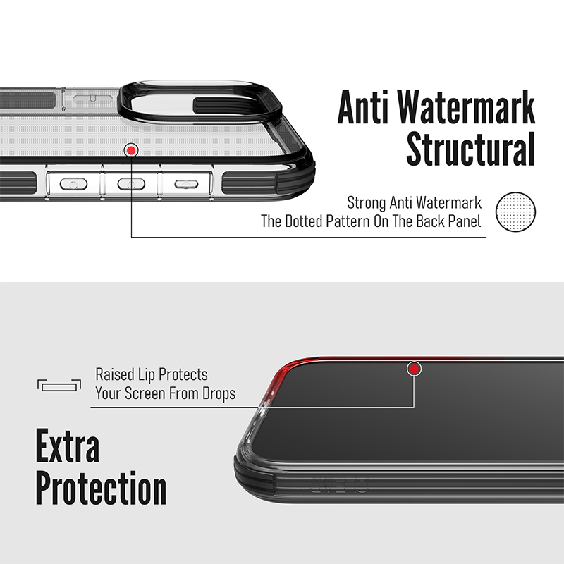 The secret to Defense Clear’s ultra protective design is two layers of shock absorbing rubber.