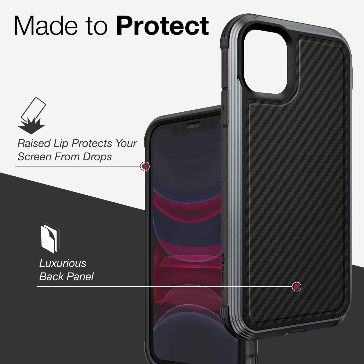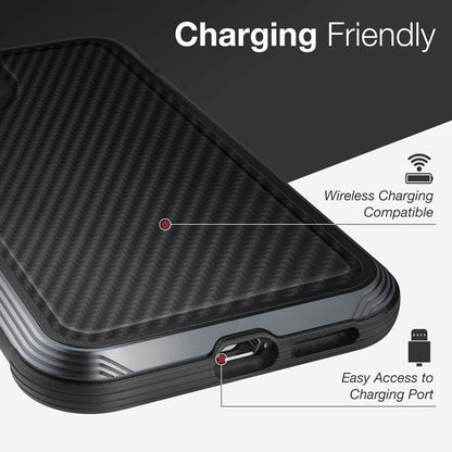 Xdoria Defense Lux starts with a soft inner rubber layer, reinforced by a hard, impact resistant polycarbonate backing. Then, a machined aluminum outer frame adds a drop protective and scratch resistant barrier to your phones perimeter. Defense Lux's layered approach to protection ensures metal never touches your device. To complete the look, a luxurious rear panel is added to complement and finish the hard metal exterior, presented in Carbon Fiber, soft leather, croc skin, rose wood, walnut.