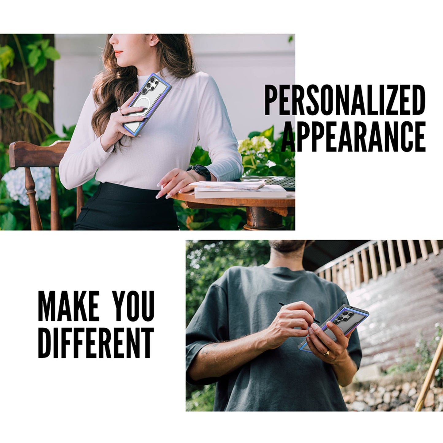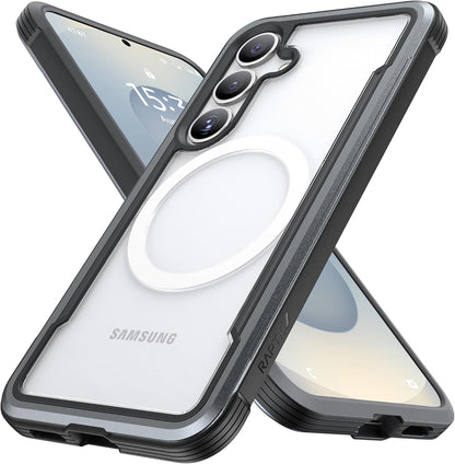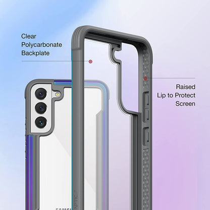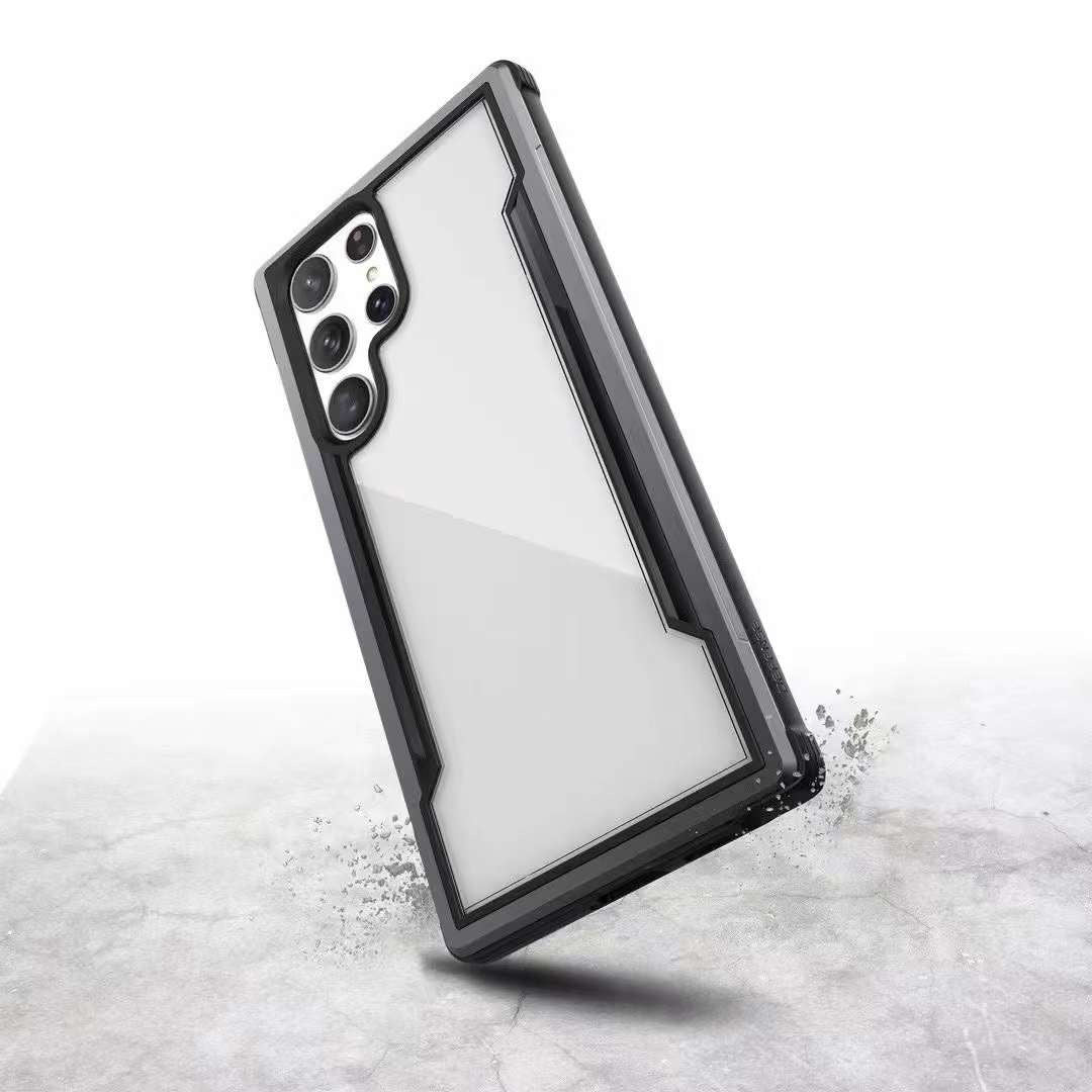 Defense Shield combines hard polycarbonate, soft rubber and anodized aluminum to form the best protective case for your Samsung phone. The use of machined metal instead of plastic provides military-grade drop protection without the bulk . Drop tested to survive 10ft (3M) drops on concrete, Defense Shield is the ultimate way to protect but not cover up, your device. A heavy-duty, machined aluminum bumper protects the perimeter of your device, while inside, soft rubber wraps around your mobile device, protecting from drops and ensuring metal never touches your device. An oversized raised lip protects your screen from drops and surface scratches. In the rear, clear polycarbonate protects your device without covering it up. An integrated sound channel amplifies the bottom speaker and redirects sound to the front of the case for the best sound experience. Simple snap on construction means no tools are required.