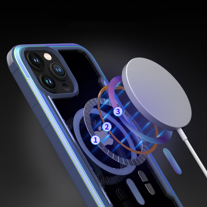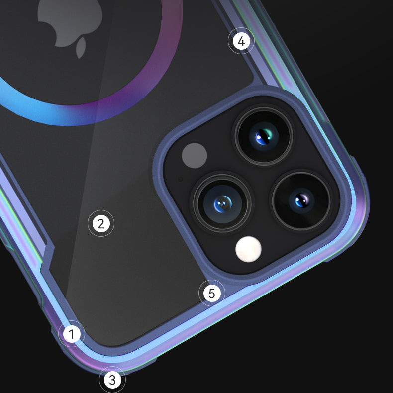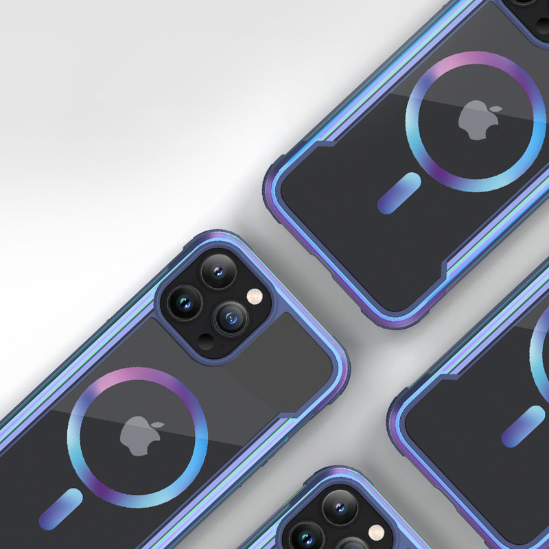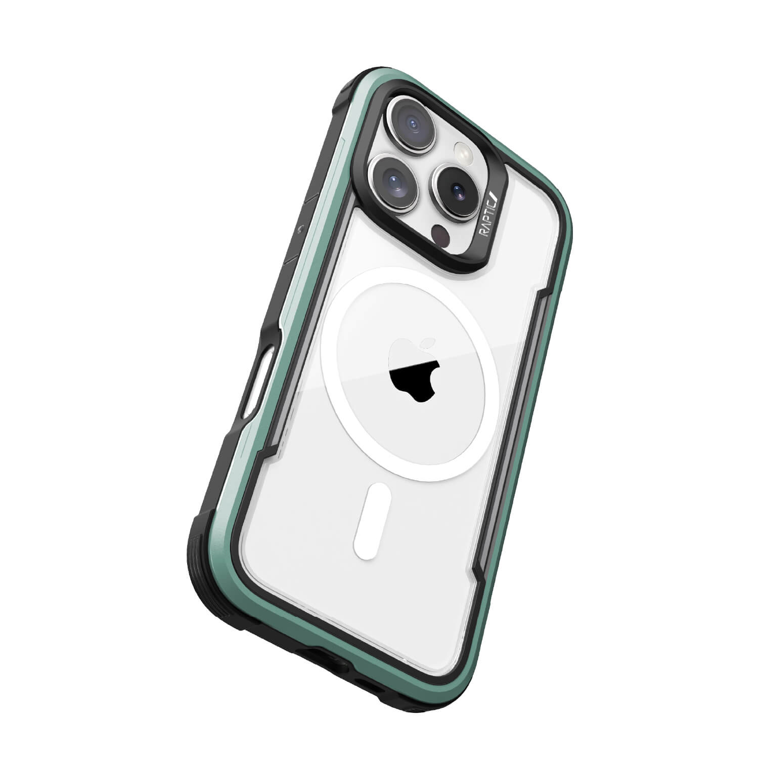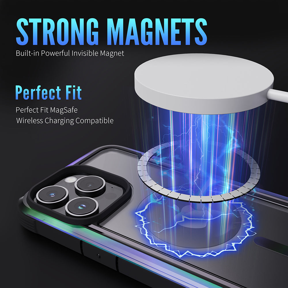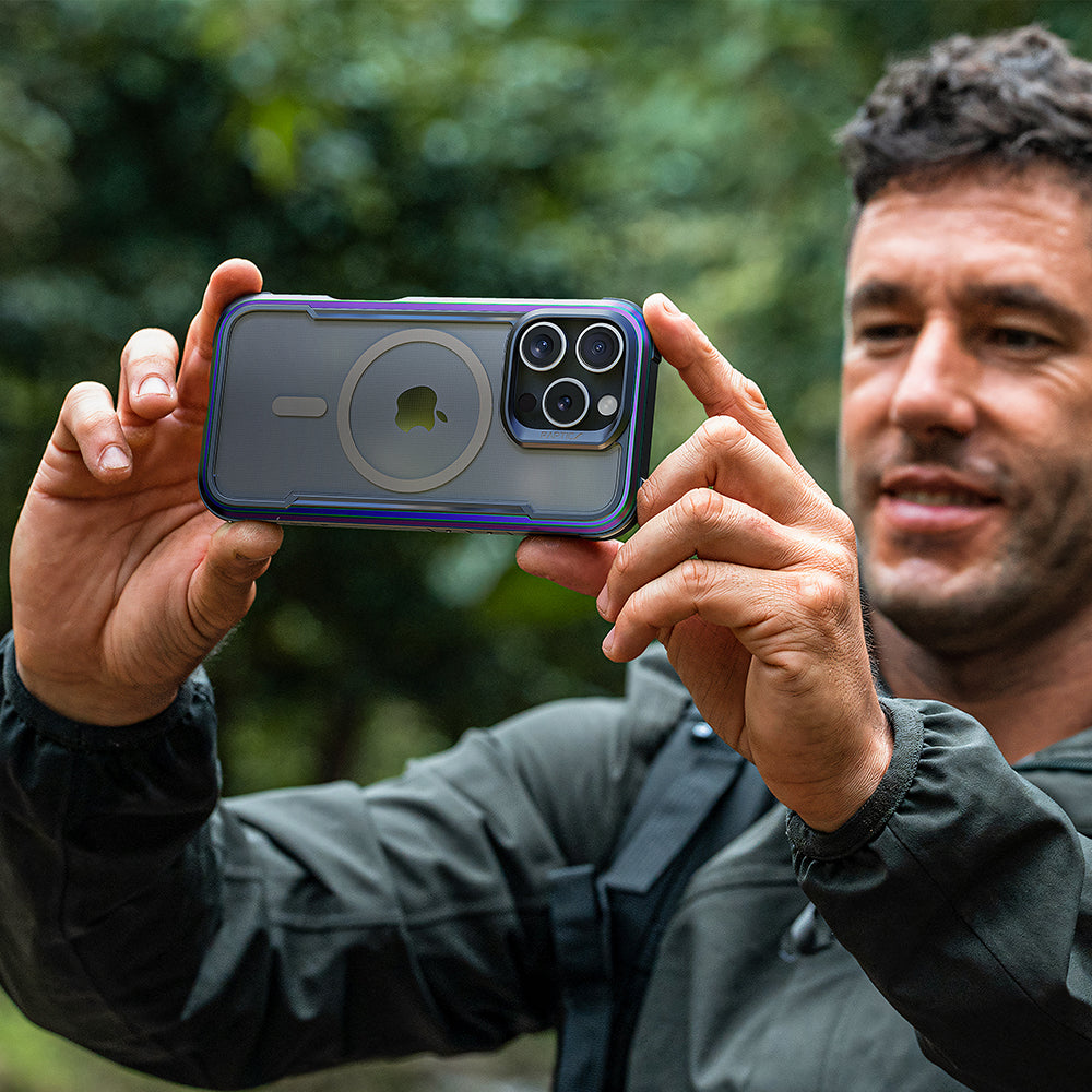 The Raptic Shield Pro Magnet case uses a ring of magnets creating the perfect alignment for fast wireless charging and secure connection. Using a combination of hard polycarbonate, DropShield Polymer and anodized aluminum, our Raptic Shield Pro Magnet case is the best protection you could ever want for your iPhone. We use machined metal to give your case a solid foundation that offers military-grade drop protection from up to 13 feet on concrete and a clear back to show off your iPhone. Inside you’ll find soft rubber that acts as shock absorption for falls, and insulated protection from the metal frame. Compatible with MagSafe Charger at the full 15W charging rate.