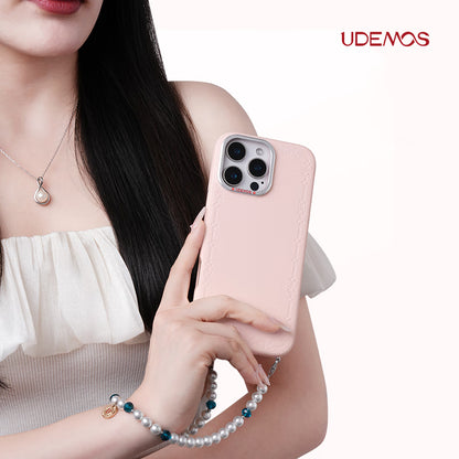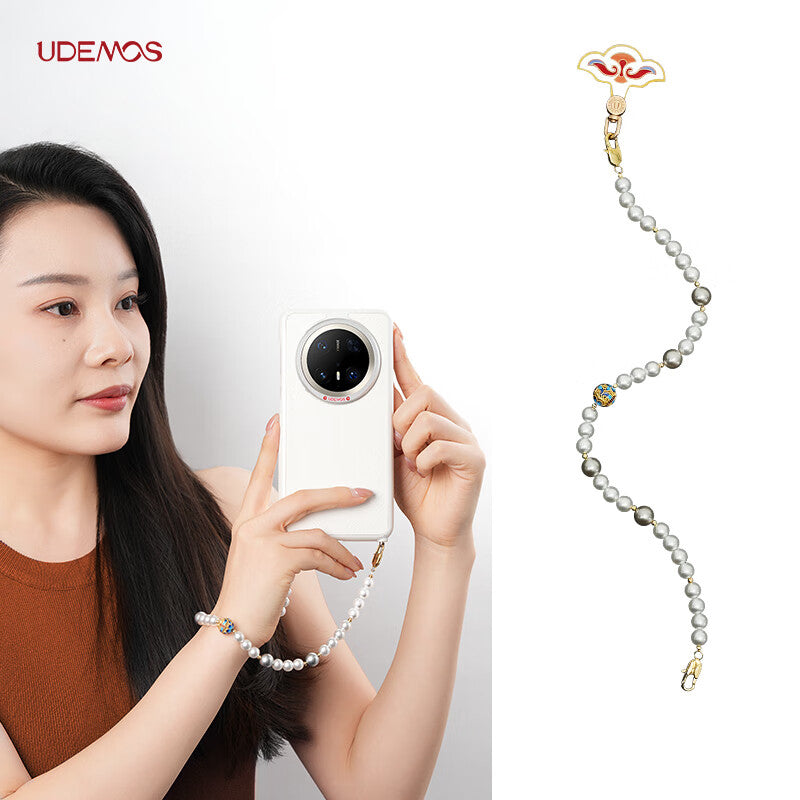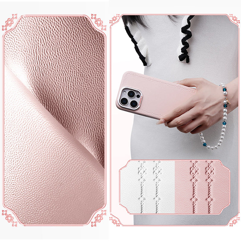 - Drawing on the classical crabapple pattern, the Ruyi crabapple ring pendant pattern is embossed around the leather, and paired with a pearl crabapple-colored ring pendant chain to form a unique aesthetic.