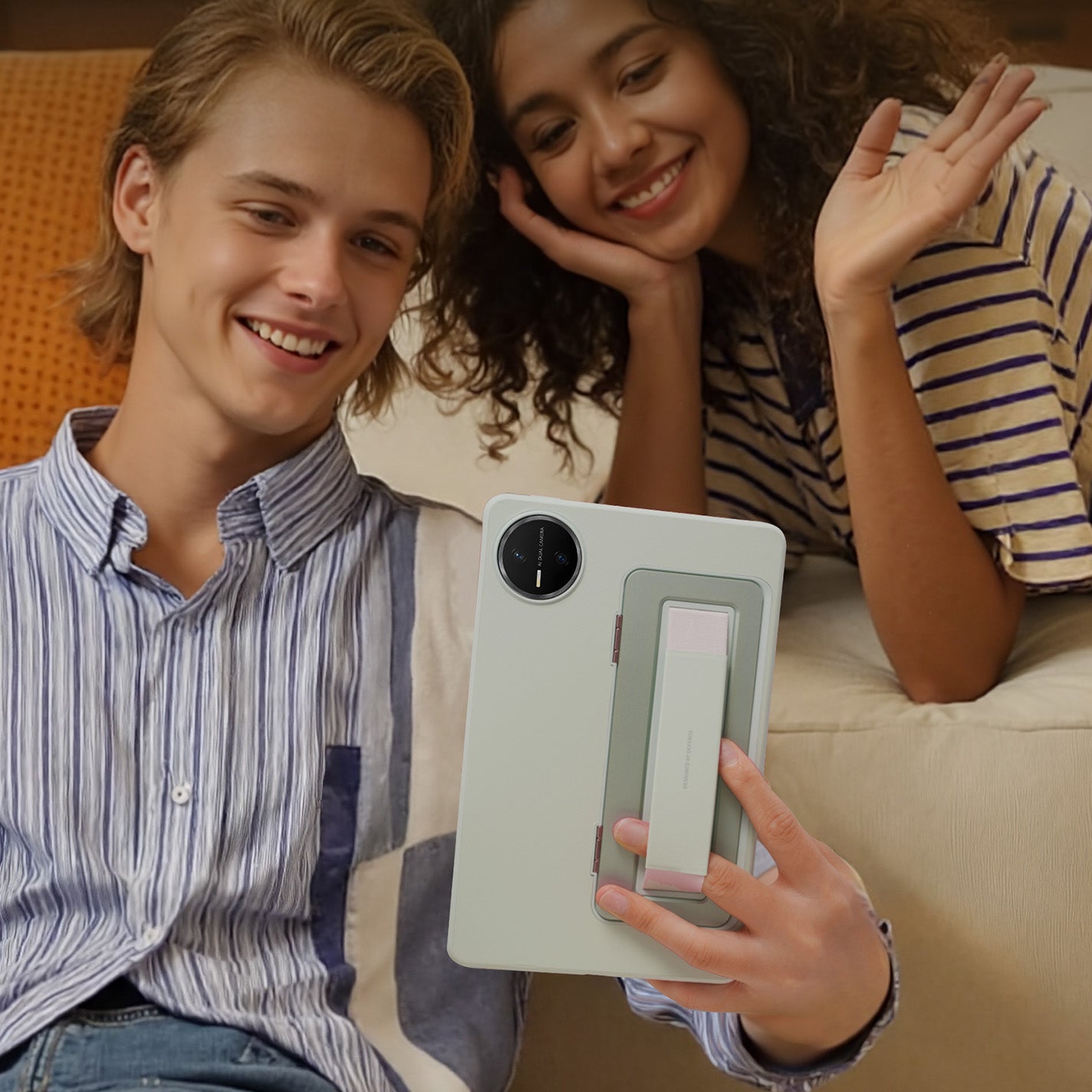 STEP 1: First, insert the camera end of the phone into the camera end of the tablet case.