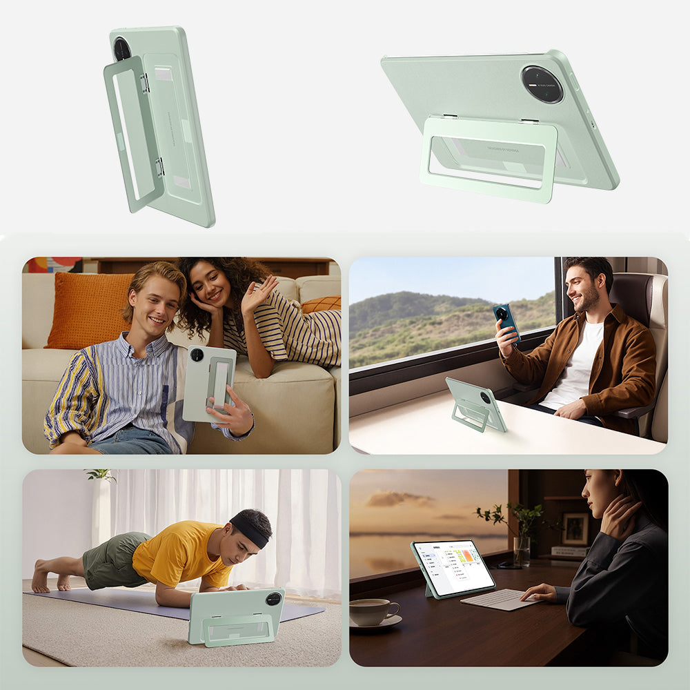 - Hidden 120° metal infinitely adjustable kickstand allows for comfortable viewing and note-taking. Use it in both horizontal and vertical positions for watching movies, traveling, doing yoga, or working.