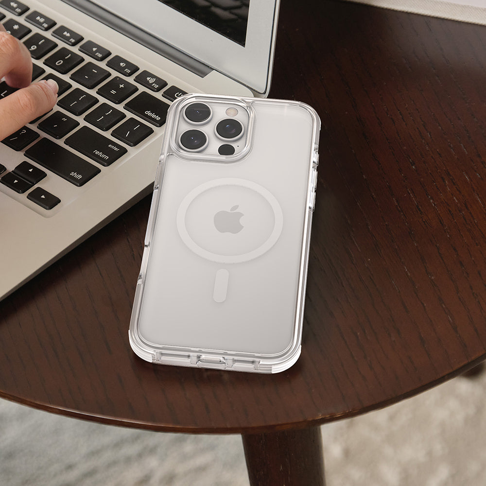 Discover the ultimate protection for your iPhone with our highly durable and lightweight cover. Engineered to withstand drops from up to 10 feet, this clear MagSafe-compatible case features advanced magnets for superior performance with MagSafe chargers and accessories, including wallets and car mounts..