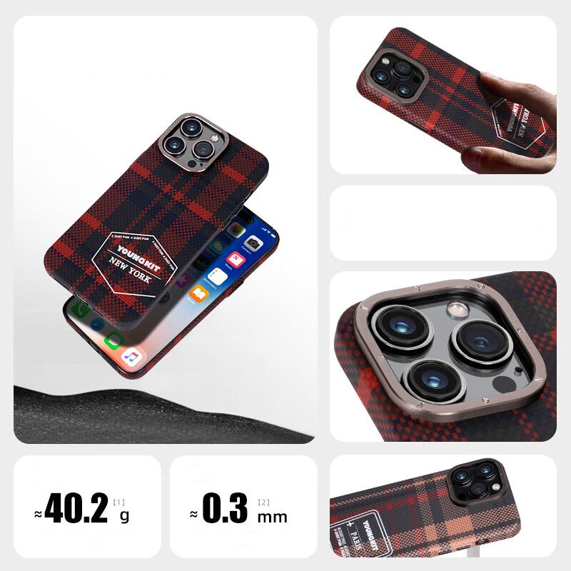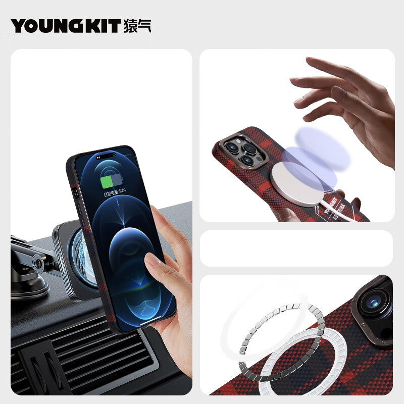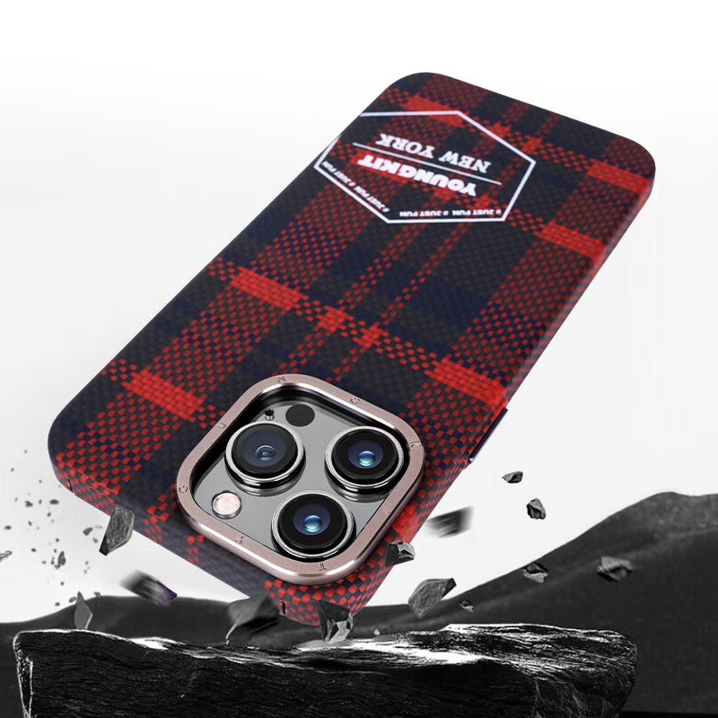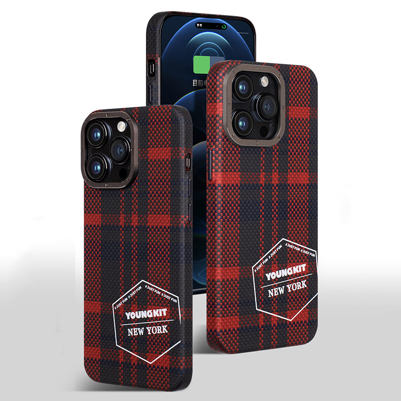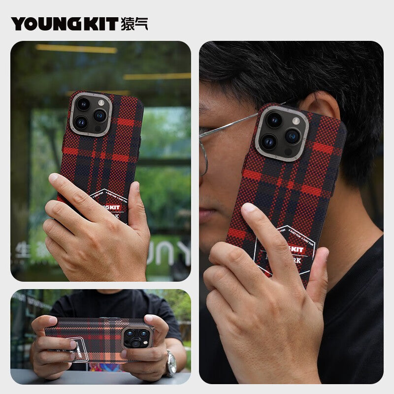 This case is inspired by an urban adventurer. The designers of YOUNGKIT adopted the lightweight Kevlar material widely used in the military, aerospace and high-end consumer goods fields, and extracted simple and advanced supercar color schemes to assemble them into gorgeous and low-key heavy armored warriors.