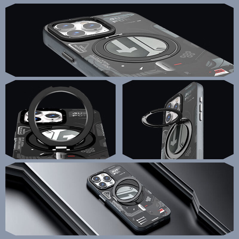 - 360° Rotation Kickstand: Fortified with aircraft-grade aluminum, allowing your phone to stand securely. The concealed built-in kickstand seamlessly integrates without adding bulk.